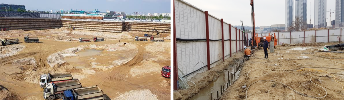 - A액과 B액이 반응 후, 점차적인 그라우트의 점성 증가로 유수(流水)의 차수보강에 효과적