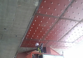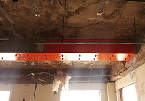 이 공법은 슬래브 하부에 작은 철골 보를 설치하는 것으로 슬래브의 지지 거리를 감소시켜 슬래브의 휨 모멘트와 처짐을 감소시키는 방법이다. 슬래브/보 균열의 직접적인 원인은 콘크리트의 건조 수축, 설계 잘못으로 인한 바닥 두께의 부족, 철근량의 부족시공 시의 철근위치의 오차, 건물의 용도 변경에 따른 과하중 등이 있으나 이것들이 단독 또는 중복되어 바닥판의 강성을 저하시켜 처짐을 발생시키기도 하고, 진동 장애를 일으키기도 한다.